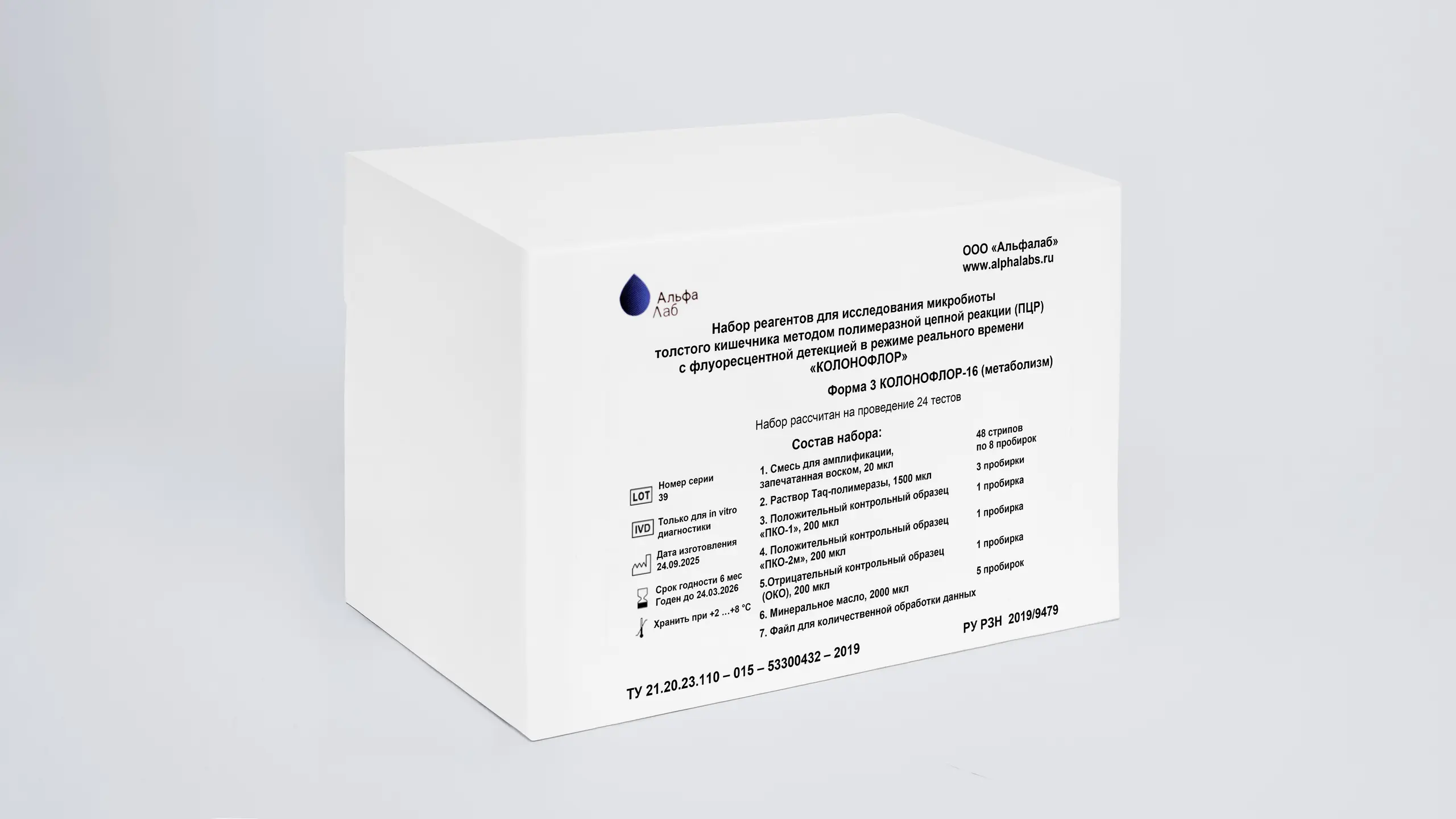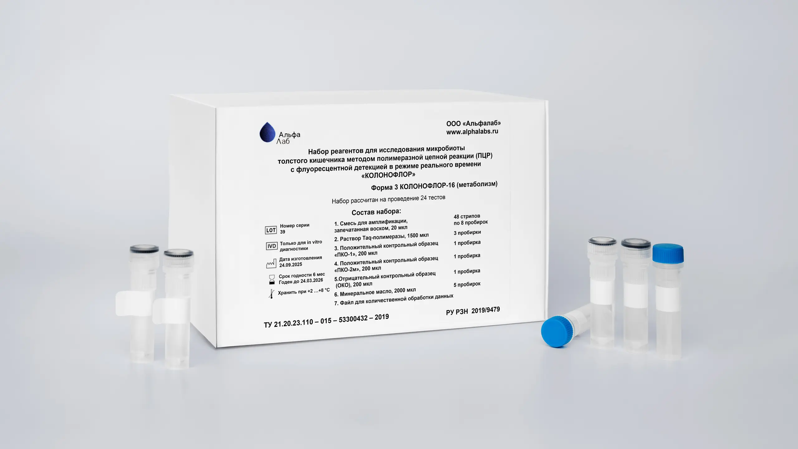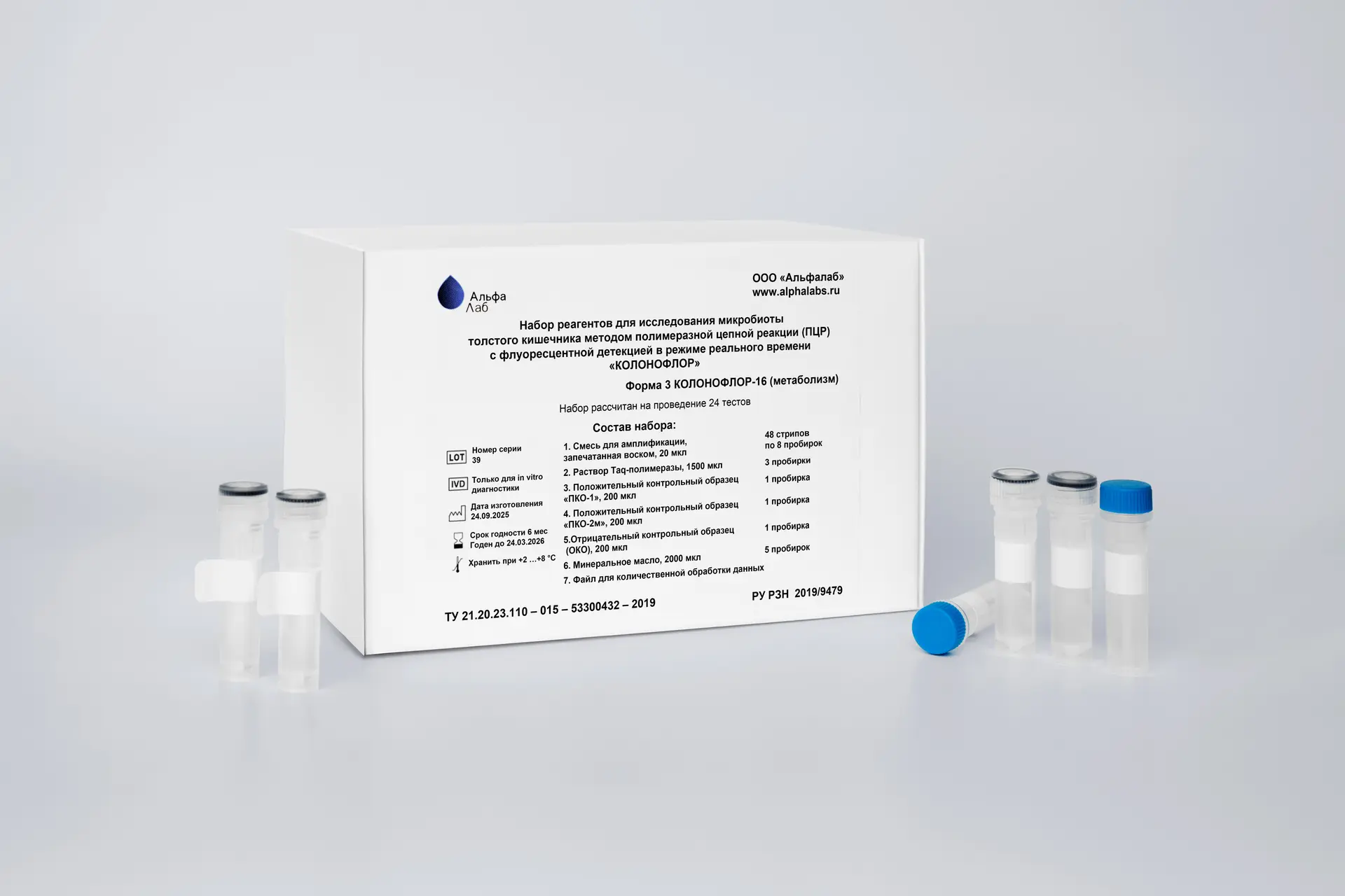 The reagent kit "COLONOFLOR" is intended for quantitative assessment of the state of the microbiocenosis of the large intestine in children and adults using the polymerase chain reaction (PCR) method with fluorescent detection of amplification results in real time.