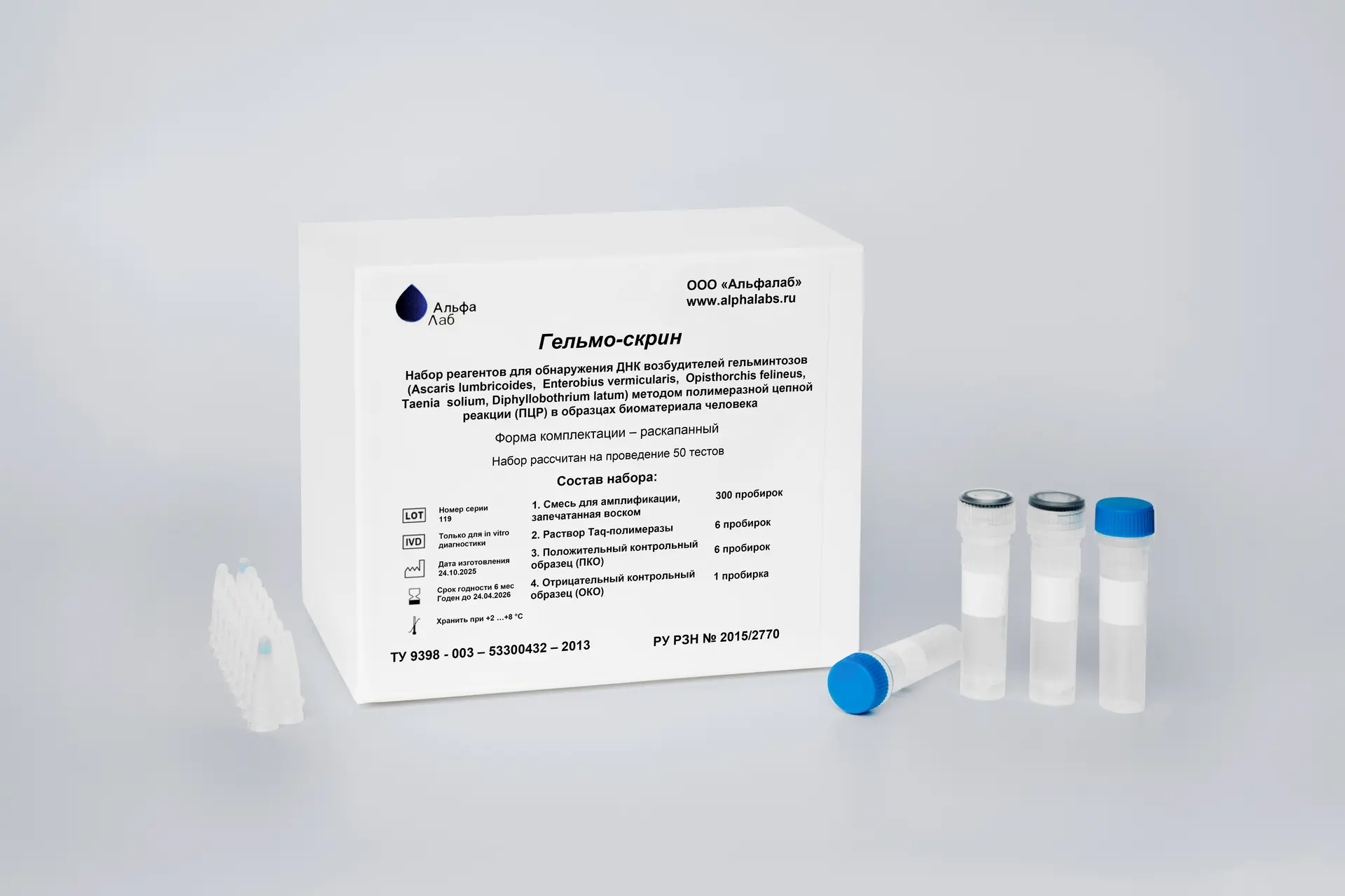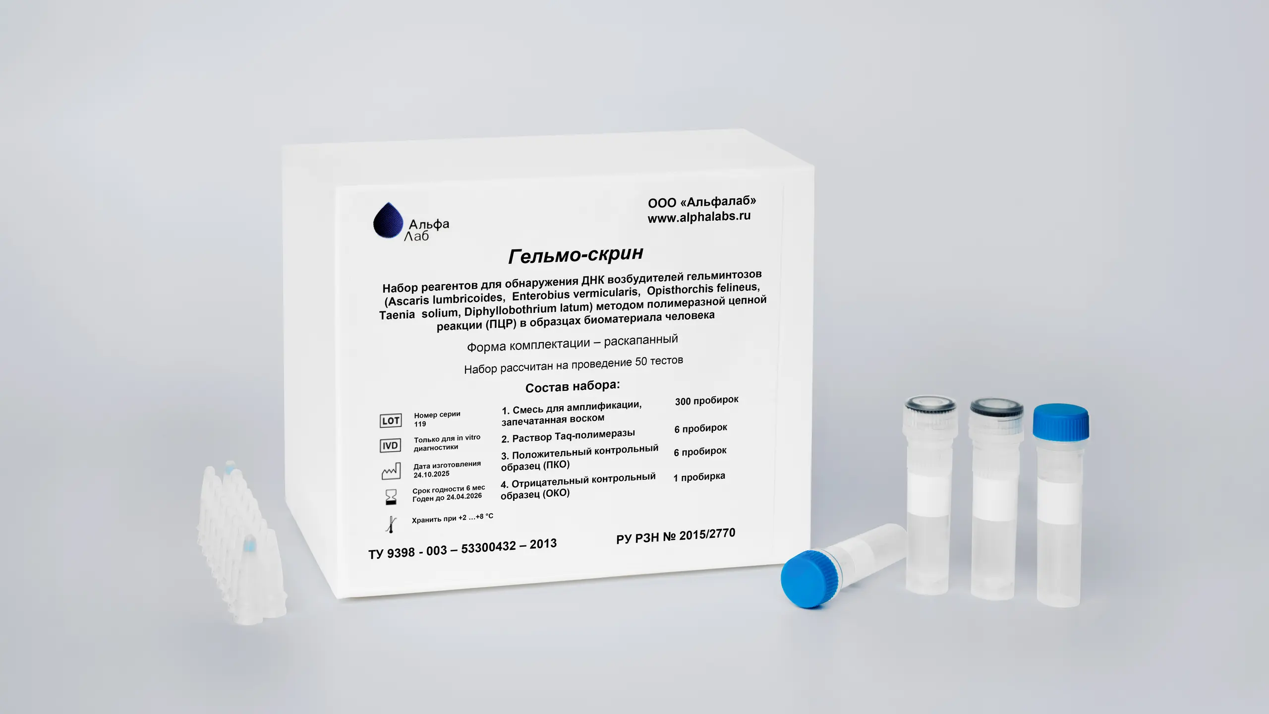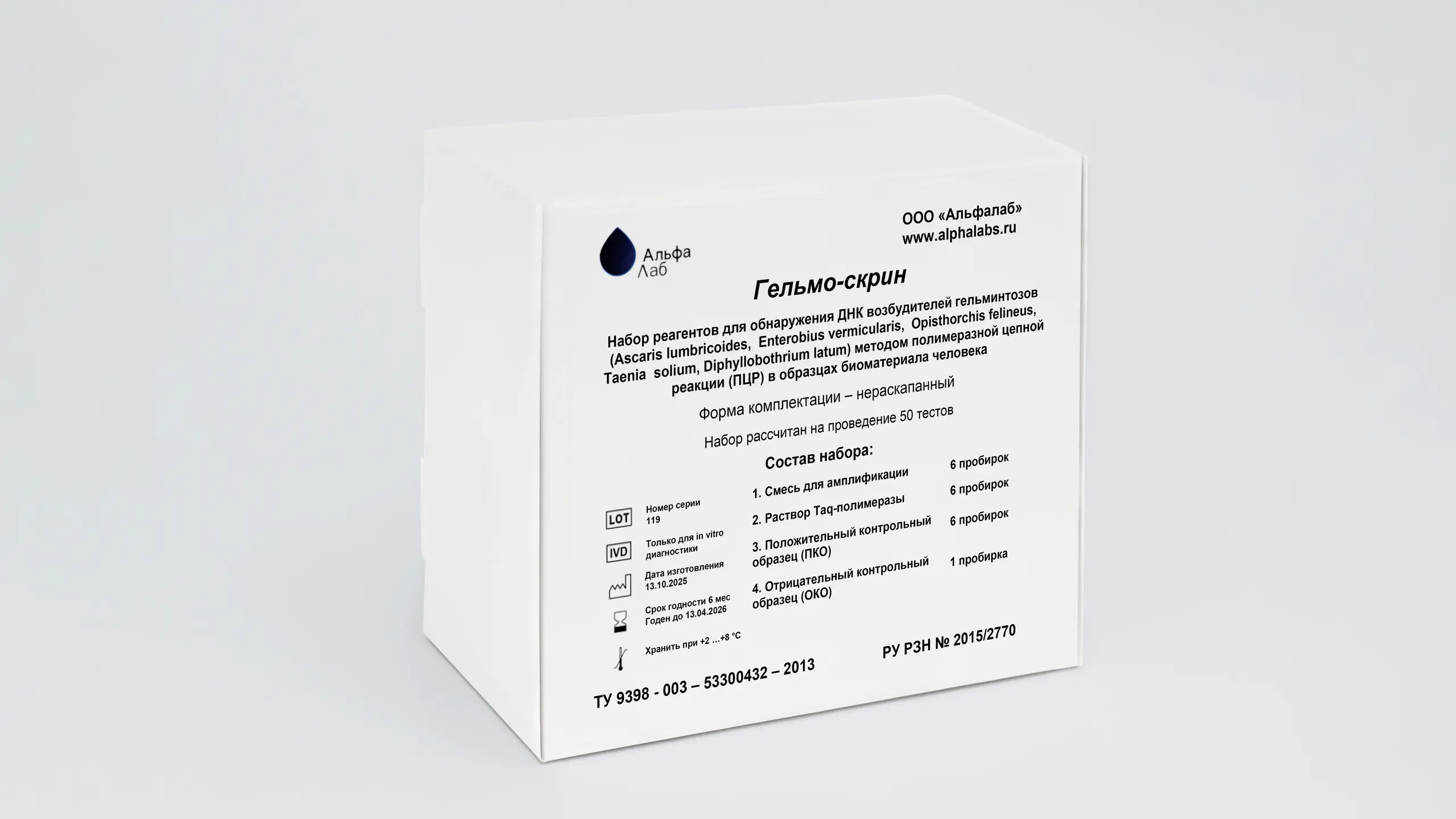 The Gelmo-screen reagent kit is designed to detect the most common human helminthiases (enterobiasis, ascariasis, diphyllobothriasis, opisthorchiasis, and taeniasis) in fecal samples. These infections share common routes of transmission and can have similar clinical manifestations (gastrointestinal dysfunction, allergic reactions, asthenia, etc.), necessitating simultaneous screening for these pathogens and differential diagnosis. The symptoms of indolent parasitic diseases are nonspecific, leading most patients to seek the advice of non-specialist doctors, such as allergists, gastroenterologists, and others, depending on the leading symptoms. Furthermore, these diseases are often asymptomatic.