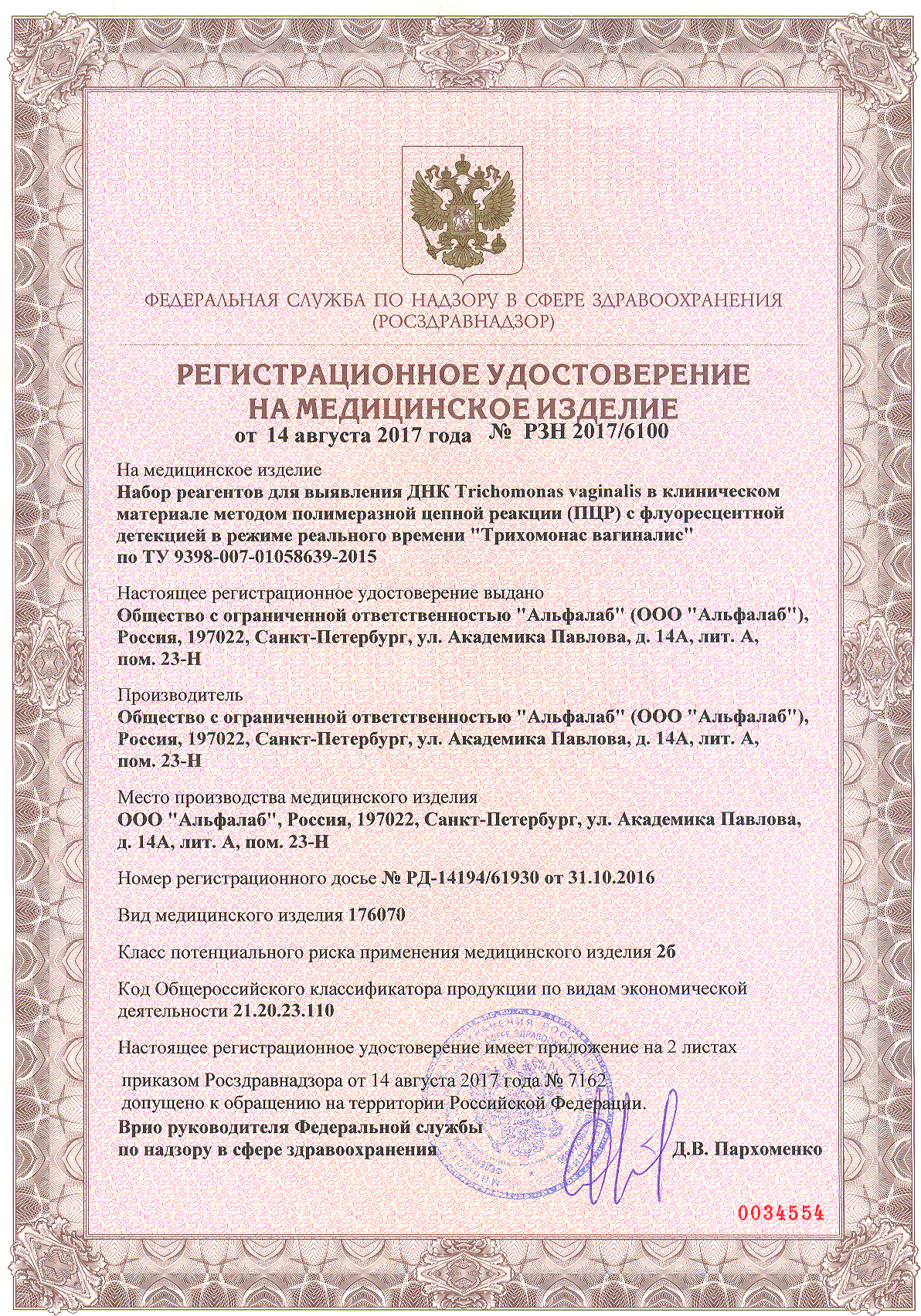 A reagent kit for detection of Trichomonas vaginalis DNA in clinical material using polymerase chain reaction (PCR) with real‑time fluorescence detection.