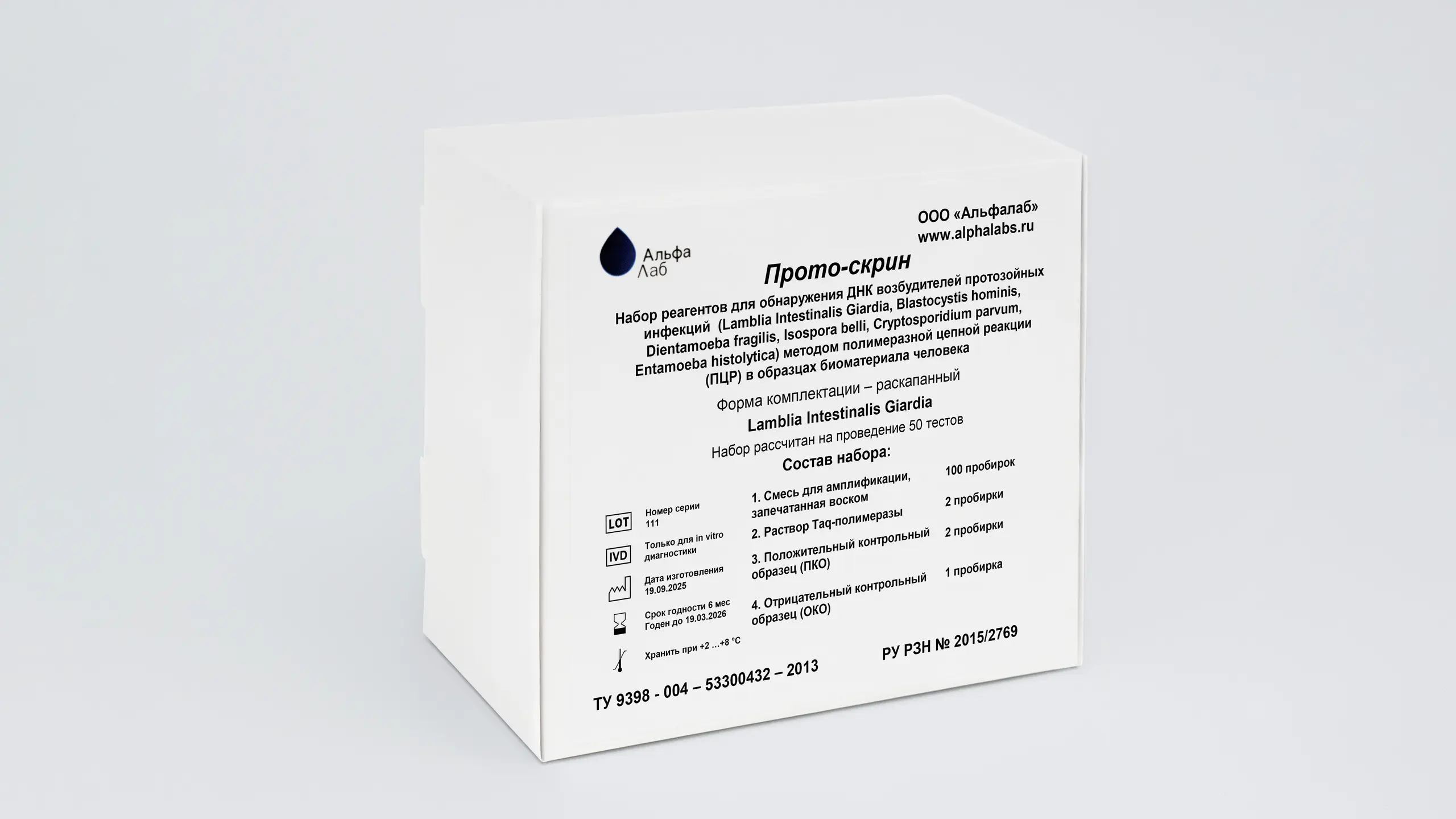 Reagent kit for detection of Lamblia intestinalis (Giardia intestinalis) DNA.