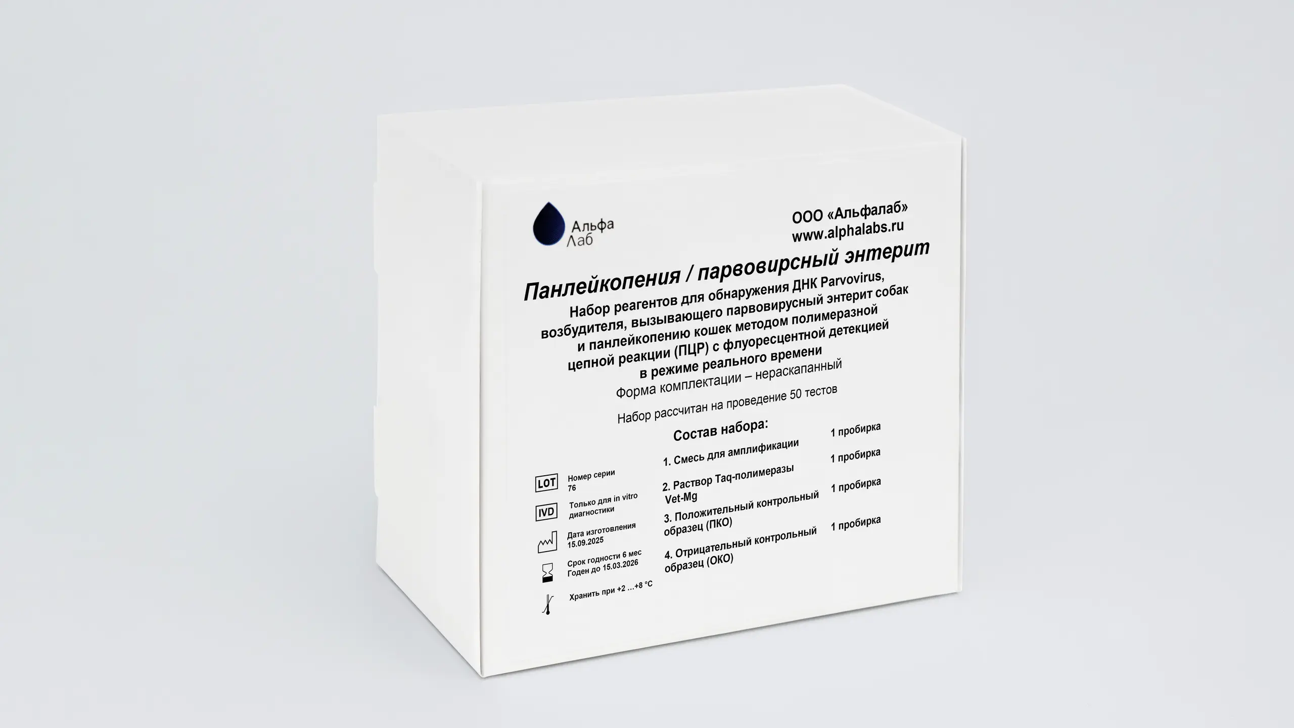 Reagent kit for the detection of Parvovirus DNA, the pathogen that causes canine parvovirus enteritis and feline panleukopenia.
